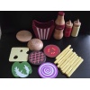 Contains: -Bun top/base, Beef Patty, Lettuce, Cheese, Tomato, Purple Onion, -Coke, -French fries (5 sticks), -Tomato Sauce (red bottle), Mustard (yellow bottle) & Pretend Menu.