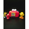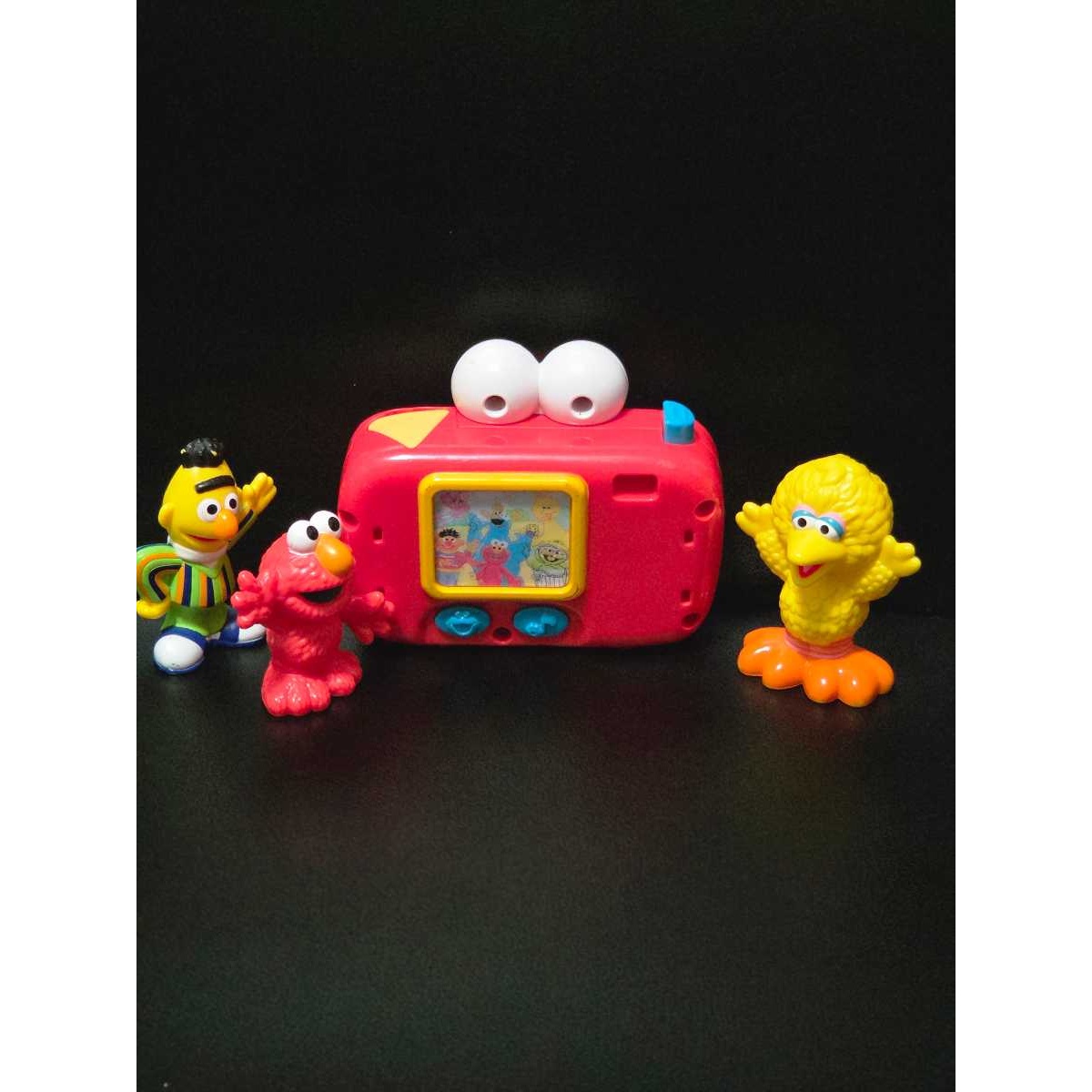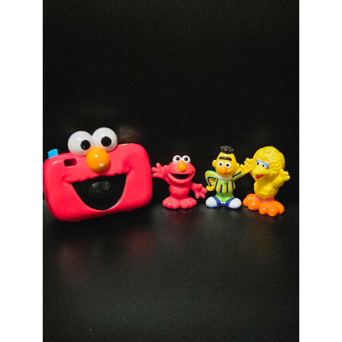 This includes the Fisher-Price Elmo Sing Along Giggle Camera, featuring interactive buttons, a light-up nose, silly sound effects, & cheese button, plus 3 classic figurines (Elmo, Big Bird & Bert).