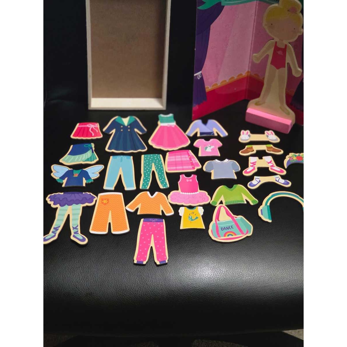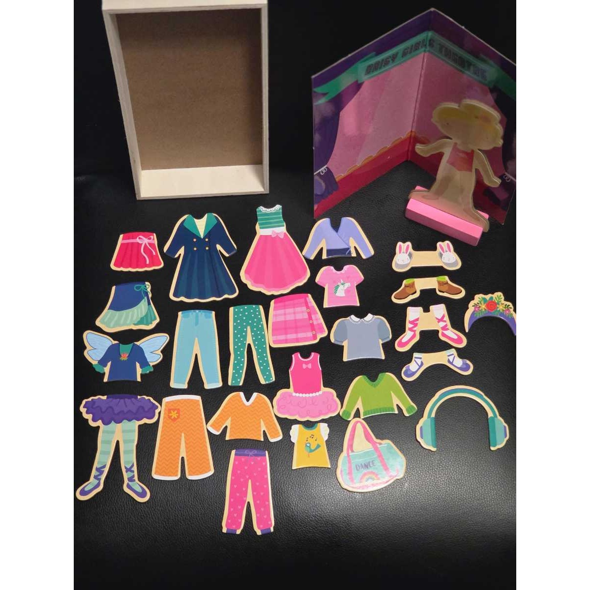 Rose is a cheerful wooden dress-up doll with magnetic, interchangeable outfits for endless mix-and-match fun.
